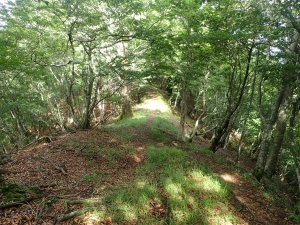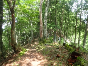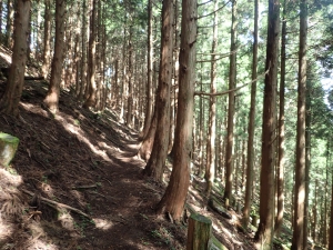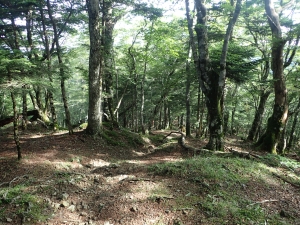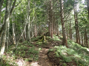 | 再び自然林 | 杉林と自然林の堺の尾根 | 林道がある |