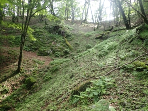 | 石壁の横を通過 | 谷間を横切る | 細い尾根を下る |