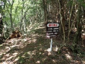 | 栃尾辻の避難小屋(9:00) | 坪内へは通行禁止 | 杉林 |