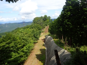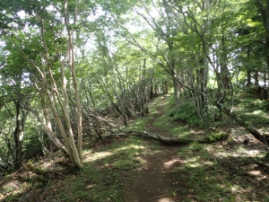 | 下は林道 | 林道に出る(9:45) | 再び登山道へ |