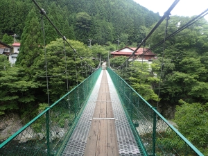| 民家の横を静かに歩く | 正面に吊り橋がある | 結構揺れる・・・・一度に5人まで |