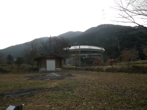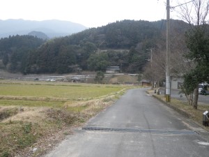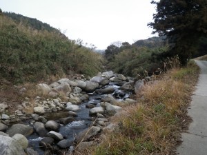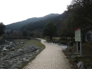 | 前に見えるのが大根地山 | 敷地内を川原沿いに歩く | 車道に合流する |