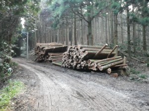 | 伐採中 | 右が登山口 | 階段がある(登山者は自分) |
