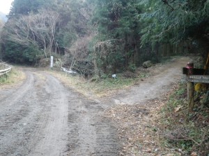 | 振り返る(右から出てきた。左は朝歩いた道に合流する) | 右手は竜岩自然の家、駐車場が見える | |