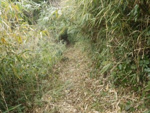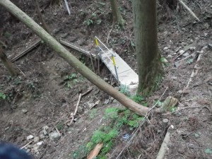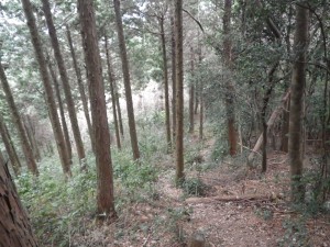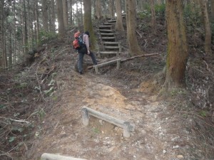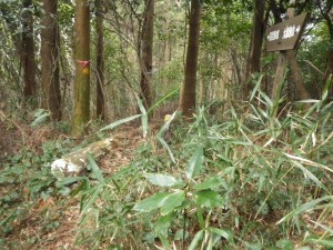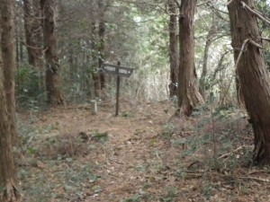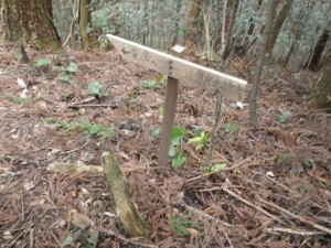 | 急斜面を降る | 植林帯 | え?どっち行こう(新しい道標の右へ行く) |