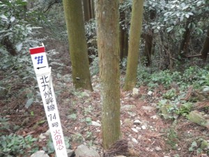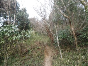 ●大根地山 大根地山の登山口は、宝満山への南側の登山口でもある本導寺付近にある竜岩自然の家から歩く。国道200号線の出雲交差点から地方道90号線、65号線へ。米の山峠を過ぎ、左に生コン工場を見るとその先左に竜岩自然の家の標識があるので左折する。すぐに広い駐車場には、他に車がない。時計を見ると8時30分、登山者は私だけか・・・・。早速準備をして出発。川沿いの遊歩道を川上に向かって歩く。空は今一つだが、きっと晴れるだろうと会話相手がいないのでひとりでぶつぶつ言っていた。自然の家の敷地を抜けるとコンクリートの車道に合流する。川から離れしばらくこの道を歩くが途中で未舗装の道になる。Y字路にぶつかるが大根地神社の看板の通り進む。Y字路から10分程度で右に道票が見えた。ここが登山口か。植林帯の中を高度を上げながら進む。丸太の階段など結構整備されている。林道に出ると大根地神社の看板がある。林道を横断して鳥居をくぐり登山道に入る。昔はこれが参道だったんだろうと想像しながら歩く。谷間の上の山腹を歩いていると谷が詰まった場所に鳥居が見えた。左には赤い鳥居も見える。道は左にカーブし、右に赤い鳥居を見る。ここが荒熊稲荷のようだ。左手に谷間を見ながら自然林となった登山道は次の谷間を詰める。コンクリートの小屋のような建物が見えてくると奥の院は近い。奥の院に出ると連続した赤い鳥居の階段を駆け上がる。息が荒くなるがすぐに神社に出る。境内を通り抜けると道票が見えて右に進む。広い空き地の奥に登山道がある。灌木帯の道を抜けると視界が開け頂上に出る。ここまで誰も会わなかった。残念ながら空は曇り空。展望も霞んで今一つ。それでも宝満山や三郡山が何とか見えてしばらく山座同定を楽しむ。時間は10時。ここでティータイムだ。テルモスのお湯でミルクティーを作り、スティック状のチーズケーキをいただく。寒い時は温かいものに限る。帰路は往路を戻るつもりであったが、道標を見ると他に道があるではないか、下に「経験者向き」とある。ん?経験者とは?・・・・「登山経験者」?ま、よくわからないが、地図もしっかりしたものがあるので歩いてみることにした。道標は割に新しい。急斜面を降ると尾根歩き地図を見てもこの尾根をとことん行けば良い。アップダウンは多少あるが、どんどん降る。途中三角点で写真を撮ってさらに降ると道票がある。新しい道標があるが、どちらも竜岩自然の家と書かれている。さぁどうしょう。どちらも同じ終点ではあるが、こういう場合は新しい道標に従おう。と右に進む。山腹をかなり歩いて鉄塔に出る。正面下に駐車場が見えた。さらに降るとまたまた鉄塔に出る。ここで道がなくなった。と言うか道標もない。しばらく探すと右に道があった。九電の幹線標識のある道をどんどん降ると砂防ダムが見えてきてその脇を降って道路に出る。下に竜岩自然の家の敷地が見える。左に歩いて行くと自然の家に出て駐車場まで戻る。時計を見ると11時40分。次は笠置山。早々に移動する。次ページへ <コースタイム> 竜岩自然の家P-(20分)-Y字路-(10分)-登山口-(35分)-大根地神社-(10分)-山頂-(35分)-三角点(476.6m)-(10分)-鉄塔コース分岐-(30分)-竜岩自然の家P ※休憩時間は含まず。全行程で約3時間でした。 |