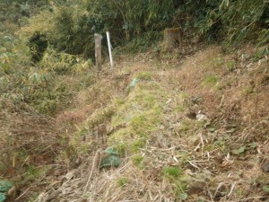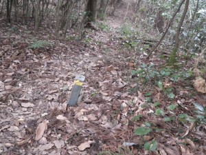 | 急斜面を降る | ここにも道しるべ | 杭沿いに道がある |