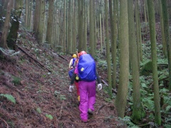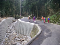 | 一旦下り、林道を東に向かう | ここから山腹を進み瑞梅寺へ | 上りが続く |