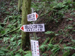 | 清賀の滝700mとある | 登山道らしくなる | 林道を横断し、防火水槽の横を入る |