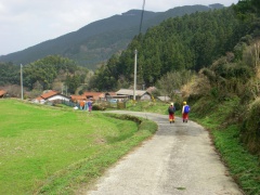 | 左へ雷山自然歩道へ | ヤブツバキがきれいだ | 民家がある |