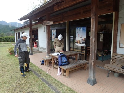 管理棟で準備体操を済ませるとボランティアガイドのお二人が同行していただけるとのこと。
