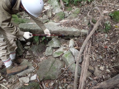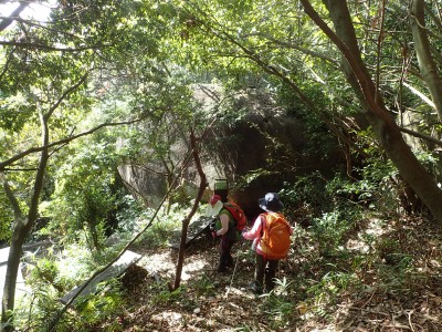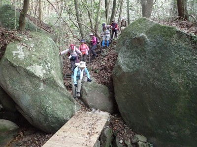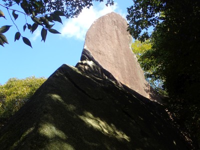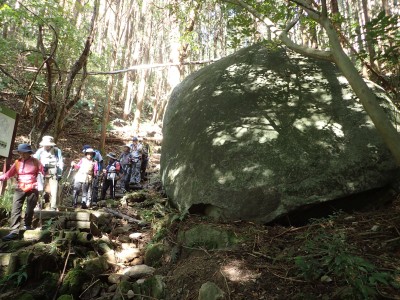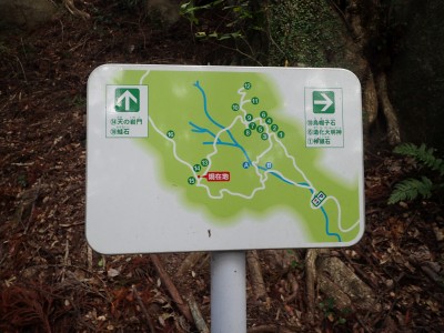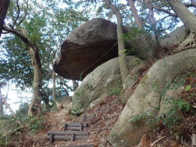 巨石パーク入口P-(25分)-登山道入り口-(60分)-烏帽子石-(12分)-天神石-(25分)-蛙石-(25分)-山頂-(45分)-乙文殊院上宮-(30分)-車道-(25分)-巨石パーク入口P ※休憩含まず。全行程で5時間でした。 距離7.8.km 標高差415m |