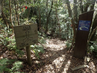 金敷城山の頂は、樹林に囲まれ展望はない。しかし、名尾峠への縦走路を少し足を延ばすと金立山などの峰々が顔を覗かせてくれる。