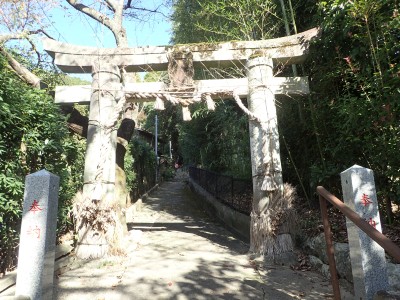 荒れた参道から十可苑の庭園をフェンス越に見て乙文殊院に到着。鳥居をくぐると車道に出る。