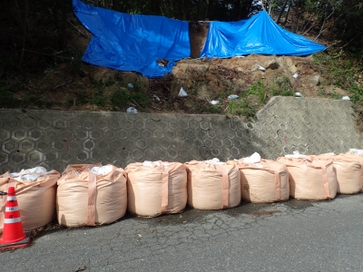 土砂が崩れている |