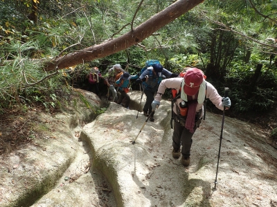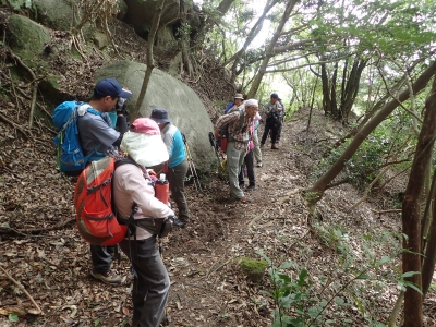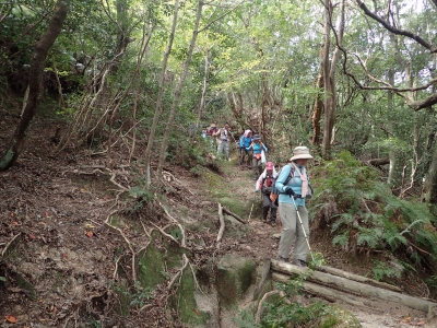 今回は、低山でもあるし、歩行距離も短いのでのんびりと歩く。それにしても湿度が高いせいか暑い。Tシャツ1枚で全く問題ないくらいである。
