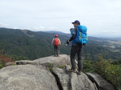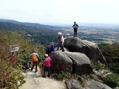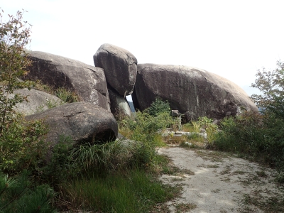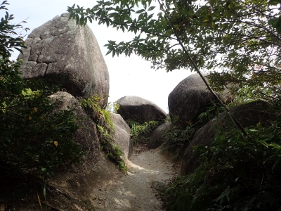 休憩所で展望を楽しんで親不孝岩の岩のテラスに立って絶景を楽しんでそして上宮の御神体の巨石でも高度感を味わい、低山ながらも巨岩怪石を楽しむことができた。