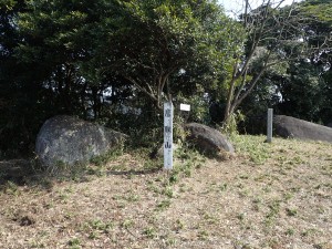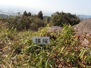 | 三角点から山頂標識を見る | 「横堀」とある | 山頂標識はりっぱな石柱 |