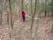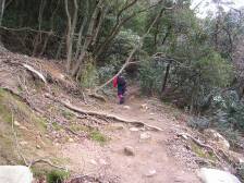 今回のコース 「昭和の森」の駐車場に止め、大きな案内板のとおり、道路沿いに公園の歩道の坂道を歩きます。数分で「河原谷コース(コウラ」と書いた標識があるので右折します。プールのような溜池を右に見てそのまま舗装道を進むとやがて杉林となり山道になってきます。 途中、右手に「うさぎ道」と書かれた標識があります。帰路はこちらから下ってくることになります。徐々に高度をあげ、右手に難所ケ滝とも思えるりっぱな滝が現れますが、もうしばらく進んだところで分岐点がありますので道標のとおり左に行きます。昭和の森駐車場から約80分で「難所ケ滝」に到着です。 しばらく観賞した後、この滝を右手に見ながら急登します。なだらかな道となり静かな原生林をしばらく進みます。やがて再び急登となり難所ケ滝から約20分程度で支尾根に出ます。支尾根を右に行きます。(間違っても左に行かないように)5分程度で三郡山と宝満山の稜線に出ます。ここの分岐点を左に行くと三郡山です。途中「頭巾山へ0.1km」とありますので立ち寄ります。山頂往復10分程度です。戻ったらさらに進むと「天の泉」があります。 次ページへ |