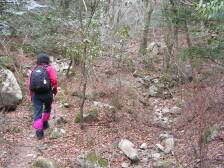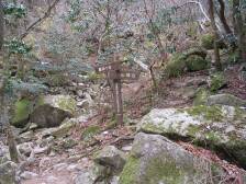 | 舗装道から山道へ | 右に行くと「うさぎ道」を経て宝満山 | 難所ケ滝の手前の滝 |