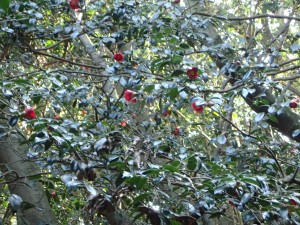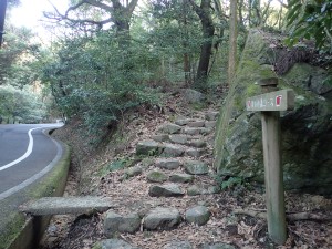 | 道路沿いの登山道を歩く | 椿の落ち花 | 結構咲いている |