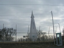 | 変わった形の展望台 | 展望台(後ろはレーダー基地) | 舗装道をしばらく歩く |