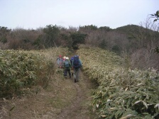 | ミヤコザサの中を歩く | 椎原峠で休憩 | 井手野(舗装道)との分岐 |