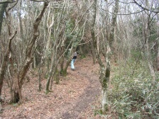 | ここから登山道へ(矢筈峠付近) | 太鼓岩との分岐標識 | 開けた場所に出る |