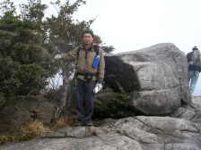 | ブナ等の自然林の中を歩く | 鬼ケ鼻岩 | 鬼ケ鼻岩にて(MORIさん提供) |