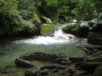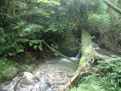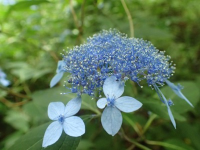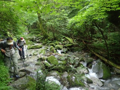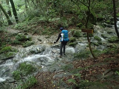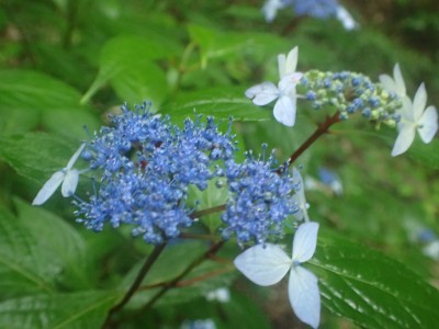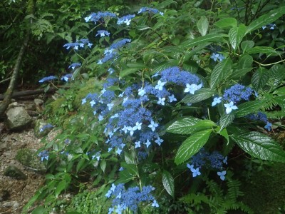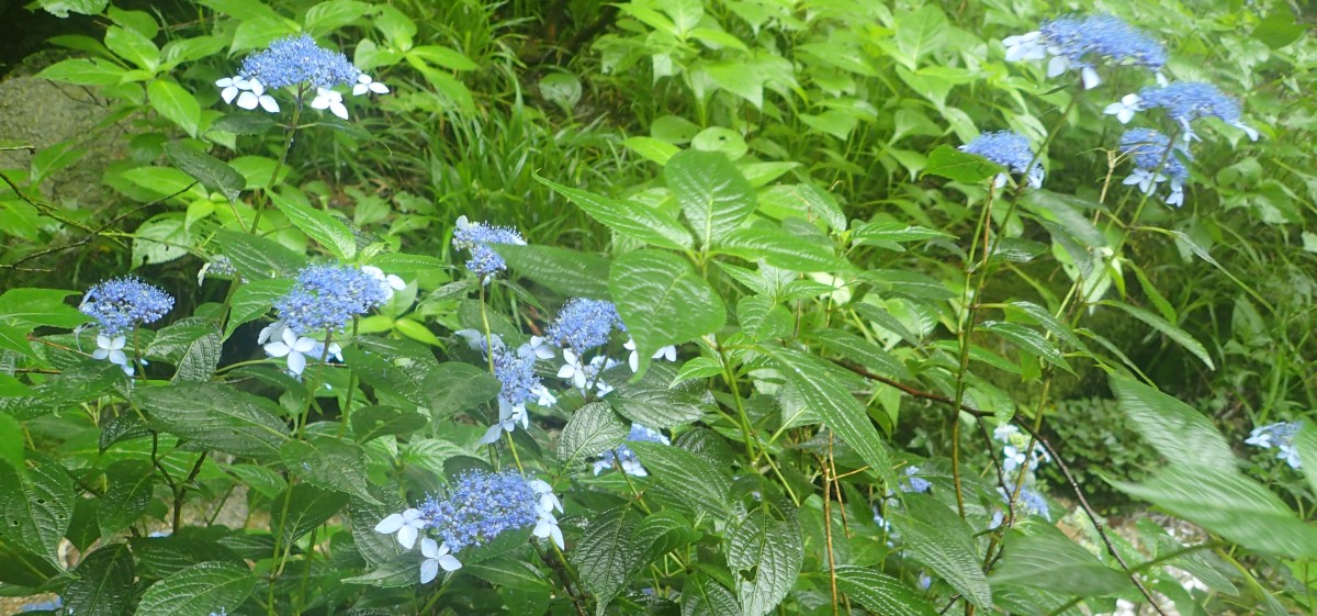 この沢はヤマアジサイが最初から最後まで点在していて疲れた心身を癒やしてくれた。そして長い谷歩きを終え、無事登山口(下山口)に到着。このところの運動不足か、かなりへたばった。
