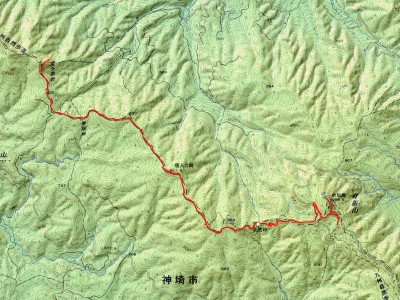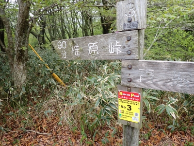 駐車場-(10分)-脊振山頂上-(15分)-舗装道T字路(椎原峠への入口)-(15分)-矢筈峠-(7分)-登山口-(30分)-唐人の舞-(35分)-椎原峠-(30分)-鬼ケ鼻岩-(25分)-椎原峠-(60分)-登山口-(35分)-駐車場※休憩時間含まず。全行程で約5.5時間でした。