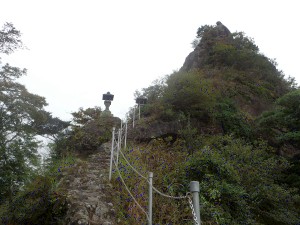 | 五智岩屋の説明・・・この横から登る(10:15) | 姫島が見える | 人が!!・・・ |