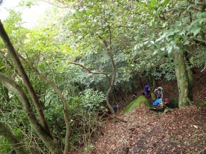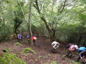 | 鹿ネット沿いに歩く | 蜂に注意とある | 急斜面を降る |