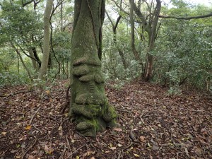 | 巨樹も多い | 舗装道を横断(11:25) | ベンチある場所で昼食(11:28) |