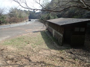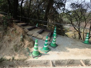 | 焼米ケ原の駐車場から道路を横断して | 工事中の自然歩道に入る | 礎石跡 |