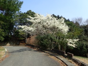 | タムシバかコブシの花が満開 | でかいツバキ花 | 大原山(12:47) |