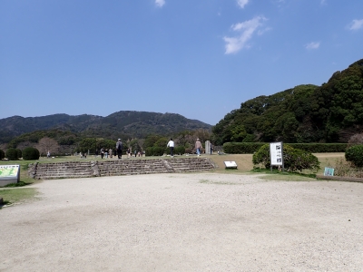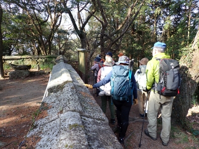 九州道は太宰府I.Cで降りると太宰府政府庁跡は意外に近い。駐車場はAM8時解錠となっていたが、既に入ることができた。現地集合のHさんと合流し、トイレと準備体操を済ませ出発。今回は前回の逆回り(反時計回り)で歩く。CLはMさん。一度来たことがあるとのこと。四王寺山と言ってもピークがいくつかある。最高峰は410mの大城山、標高差も約400m、日本アルプスから言わせると「丘」だろう。しかしながらこの山は何と言っても古代山城遺跡を目にすることができるのが魅力だろう。そして三十三石仏の札所があるのも面白い。今回はその札所の1番から歩き始めるが、我がメンバーはほとんど興味がないようで気にする者はいなかった。さて見所を次から次へと進み、やはり百間石垣には皆感動したようだ。詳しく説明が出来るガイドさんでもいればもっと面白いだろう。このルート1番長くきつい登りを終え野外音楽堂に到着するとランチタイムだ。陽射しは強く日影で過ごす。ここは車が通れるし、トイレもある。のんびりとランチを終えて出発。最高峰の大城山に着く。頂上は樹林の中で暗い雰囲気だ。毘沙門天に立ち寄り、九州自然歩道と並んだ山道を下山する。民家が見えると政府庁跡は近い。桜は結局全く開花しておらず、花見登山にはならなかったのが残念だ。また、メンバーがスマホを落としてしまったアクシデントもあったが、メンバー誰しもあることで「他山の石」となるだろう。色々と勉強になることが多いが、今回CLを進んで引き受けてくれたMさんには本当に感謝である。それにしても黄砂のすごさは駐車場に戻って驚いた。車が白くなって明らかに砂が溜まっていた。