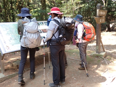 P-(50分)-岩屋城跡-(60分)-大原山-(50分)-百間石垣-(20分)-野外音楽道-(25分)-大城山-(60分)-登山口(九州自然歩道の道標)-(20分)-P※休憩含まず。全行程で約6時間でした。 |
