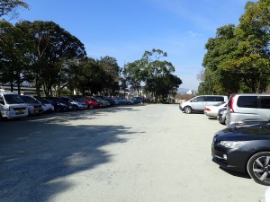 | 車道に出ると音楽堂(12:25) | 音楽堂の横に百間石垣の標識 | 明るい道を歩く |