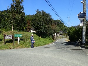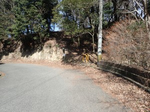 | ここは真っすぐ | 登山口(10:18) | この舗装道から左に尾根にとりつく |