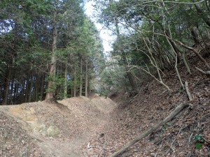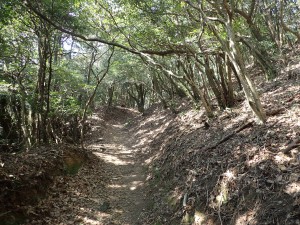 | 登山道は直登を避けて脇を行く | 再びえぐれた道 | 焼米ケ原からの道とのT字路に出る(11:04) |