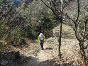 平成29年3月4日(土)天気晴れ ■出発時間:8時30分 自宅 ■メンバー:家内と2名 山好きな人が「大宰府」と言えば、「宝満山」であろう。しかし、ガイドブック※にはもうひとつ四王寺山(しおうじやま)と言う山が掲載されている。前々から気になってはいたが低山で遺跡巡りを楽しむ山のようなのでなかなか気が進まなかった。遺跡に興味がないわけではないが、「一人で遺跡を見てもなぁ〜」と思うのである。 そこで家内を誘ってみることにした。いかにも面白そうだと言い、うまく誘いに乗ってくれた。 四王寺山は山脈名で最高峰は「大城山」(おおぎやま)と言う。最高峰と言ってもわずか410mだが。ルートは大野城跡をぐるっと一回りする。ガイドブック※では「土塁の上を歩く」とある。今回は、ガイドブックのルートを少しアレンジして坂本八幡宮の方から尾根を歩き28番札所手前で合流するルートを歩く。 朝、ゆっくりし過ぎて自宅を出たのは8時半、古賀SAでトイレ休憩して大宰府政庁跡へ。 駐車場(無料)の近くのコンビニで食料を調達し出発。青空の下、梅の花のほのかな香が心地よい。のんびりと舗装道を歩く。坂本八幡宮を過ぎて民家を抜けると周りは畑、通行止めの道の左に車止めがある。勝手だがここを登山口にしよう。 広い舗装された道を少し進み、カーブの左から尾根にとりつく(赤テープしかない)。 踏み跡はしっかりしている。 大きな石碑(何か文字が彫ってあるが・・・・)があって尾根らしい道を行くと高圧線の鉄塔が目の前に立ちはだかる。もちろん切り開かれているので眺めは良い。再び樹林帯に入り、えぐれた道を高度を上げて焼米ケ原からの道とのT字路に出合う。左に進み「創造の森展望台」とあるので急坂を登る。 真下には、狭い道路と駐車できそうな広場が見える。どうやらここまで車で来れそうだ。 展望は南と東が開けてもちろん宝満山も眺められる。少し行くと今度は28番札所と書かれて馬頭観音菩薩の石仏がある。緩やかに降って平坦な道を歩くと道標が次々とあるが、広目天礎石群のところで道から外れちょっと立ち寄ることにした。 一段上がった場所に礎石があるのだが、もう一段上がると井戸がある。地図を見ると391mのピークのようである。 従走路は散歩コースのようで人の往来が多い。広い道が二手に分かれて西側を行くと千手観音のある26番札所がある。ベンチもあって眺めも良いのでまだ早いがここでランチタイムとした。 樹林帯の広い道を再び歩き毘沙門堂に着く。お参りの人が数人いて左手奥に山頂標識があった。展望はなく、山頂らしさもない。休憩場所にはお勧めできない。 山頂から往路を赤い鳥居まで戻り、そこから音楽堂へと進むが広場があるので道がわかりづらい。広場を抜けて反対に行くと階段状の道があった。地図を見ても間違いなさそうだ。杉林の尾根をひたすら降って舗装道に飛び出ると音楽堂がある。(うっかり写真を撮り忘れたので当ページにはない) 音楽堂の左わきに百間石垣への道標があるのでその通りに進む。 今度は尾根道でも開けたところもあって気分よく降ってゆく。※ガイドブックは山と渓谷社発行の「分県登山ガイド福岡県の山」 次ページへ |