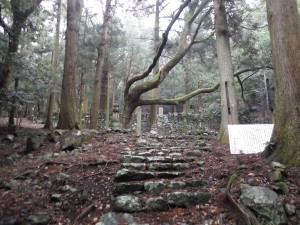 | しばらく未舗装の林道を歩く | ぬたが迫道との分岐点(9:10) | 四恩寺跡(9:17) |