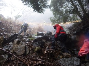 | 無事ゴルジュを抜ける | きれいな湿地帯 | 植林帯を抜ける |