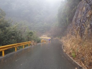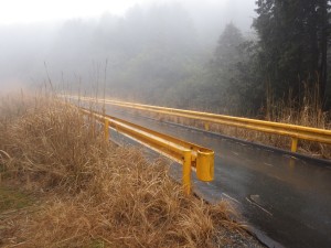 | 滑りやすいので注意 | 道を失う | ガードレールが見えた |