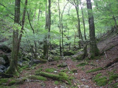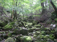 | カラ谷とウケドノ谷分岐(カラ谷方面へ) | ウエノウチ谷へ | 巨樹が多い |