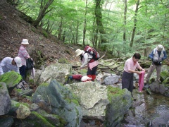 | 沢の水を楽しむ | 登山口(堰堤から入っていった) | 一旦ここまで戻り国見岳登山口へ |