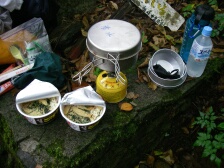 | ガレ場も慎重に | 5合目小屋で昼食 | カップ麺に乾燥野菜を |