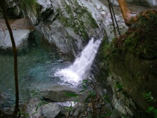 前ページからの続き 予定では祖母から障子岳、親父岳と縦走するはずだったが、天候が思わしくないため、祖母登頂後、下山することにした。それではもったいない1日になるので帰りに白水ダムと原尻の滝に万丈一致で立ち寄ることにした。白水ダムは今年の6月にも行ったが、今日はダムの反対側から行くことにした。前回は私たちだけであったが、今回は観光客で賑わっていた。そのうち「白水ダム饅頭」なんていうお土産が出るかもしれない。それにしてもこのダムは見事である。 さらに原尻の滝に寄るのだが、私たち夫婦は始めてである。私たち家族は昔からキャンプや釣りばかりで観光という観光はしていない。子供たちも連れっていってやれば良かったと少し後悔である。本物のナイアガラの滝は見たことがないのでこれがどのくらいのスケールかは判断できない。私には感動的であった。ただ、滝の上部は保護のためか、人の手が加えられているようでちょっと残念である。 <実際の行程> 10/6 AM10:55神原駐車場出発−11:25御神の滝−11:455合目小屋−14:00いのちの水−14:20国見峠−15:109合目−15:309合目小屋(テント泊) 10/7 AM7:209合目小屋出発−7:40祖母山頂−8:30国見峠−10:155合目小屋(昼食)−11:45神原駐車場 <最後に> 今回山行を担当をさせてもらったが、リーダーのMORIさんに大部分助けてもらい感謝である。おかげで皆、無事下山できた。また、気の合う仲間(皆、年上ですが)との宴会も盛り上がり、本当に有意義であった。これもまた感謝である。残念ながら予定通りのコースも山頂の展望も満足行けるものではなかったが、これもまた再チャレンジの機会ができて楽しみである。 |