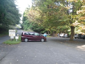 | 登山口駐車場(有料) | 駐車場の奥に登山届が | 登山口にて |
